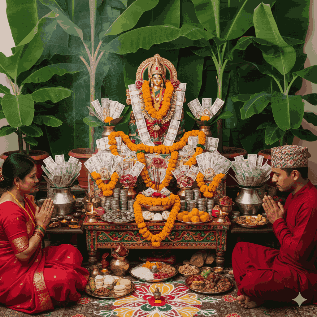 तिहारको तेस्रो दिन आज साँझ ऐश्वर्य, धन धान्य र सम्पन्नताकी देवी लक्ष्मीको पूजा आराधना गरी लक्ष्मीपूजा गरिँदैछ ।